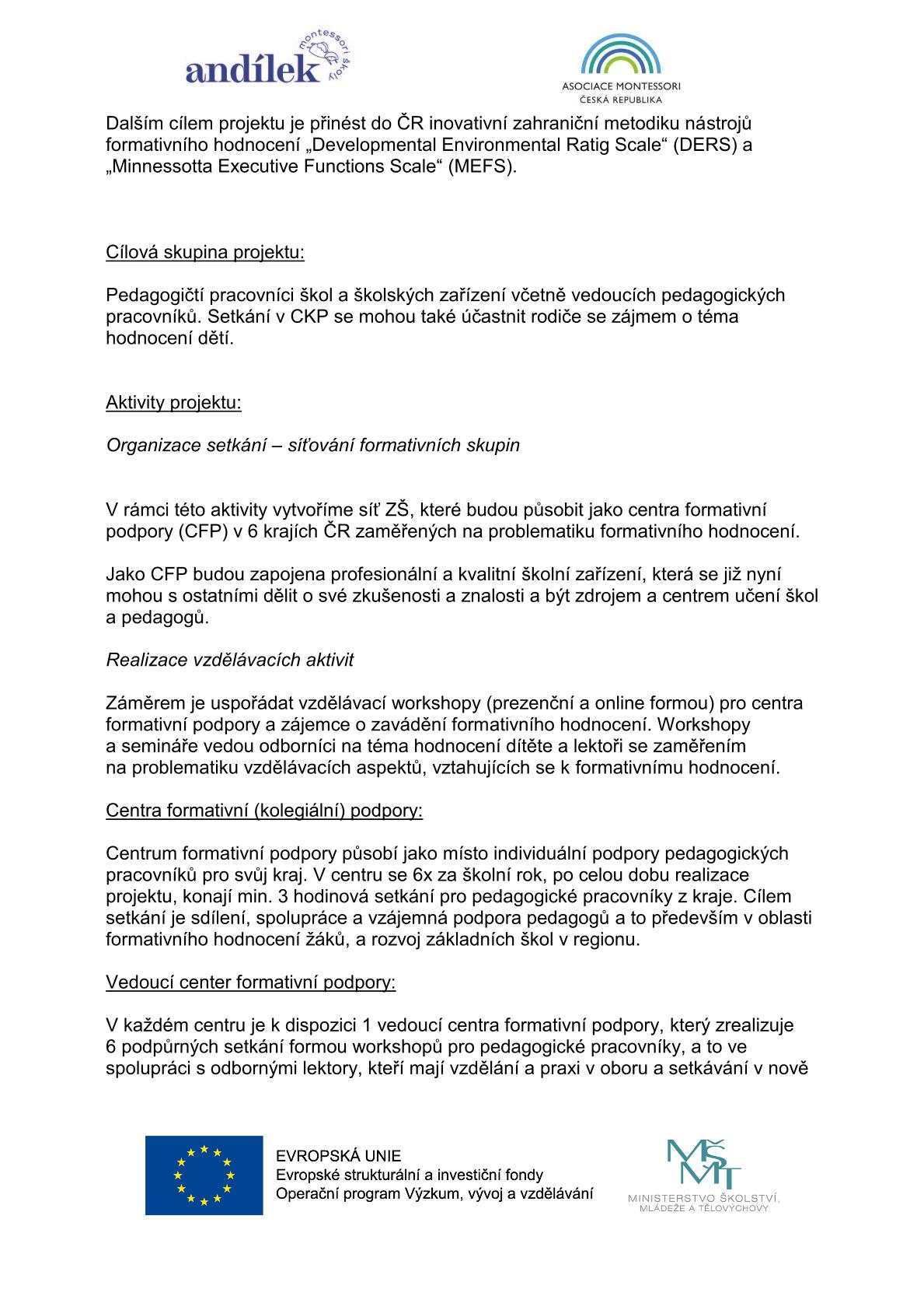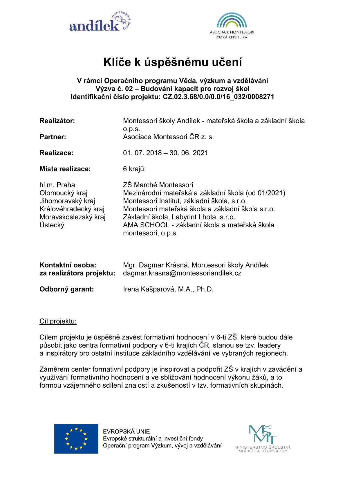 Naše škola se podílí jako partner na projektu Klíče k úspěšnému učení, jehož cílem je zavádění formativního hodnocení do běžné praxe škol, a to prostřednictvím sítě základních škol. Naše škola je jednou z šesti škol, kde po úspěšném ukončení projektu bude zavedeno formativní hodnocení, a zároveň se staneme tzv. leadery a inspirátory pro ostatní instituce základního vzdělávání ve vybraných regionech.